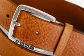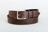 a true fusion of elegance and strength. Measuring 4 cm in height, this high-quality leather belt offers a combination of strength and softness thanks to the wax finish that enhances its natural surface. The buckle, personalized with the typical silver hallmark, adds a timeless appeal, with a clear reference to the hipster genre. The wax-treated Alaska leather brings the leather to life, protects it from humidity and, with the natural polish resulting from daily use, develops a more intense color over time. Waxing leather, an ancient technique with proven effectiveness, helps protect against damage and ensures greater resistance and durability of leather clothing.